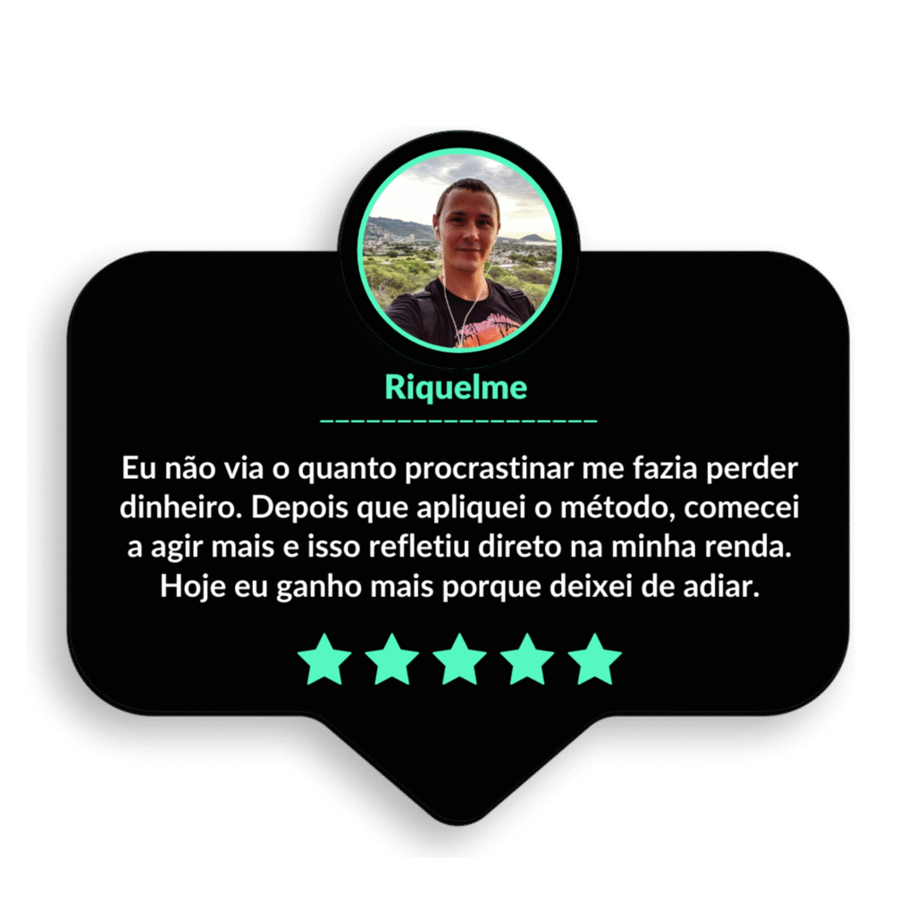 Você percebe o impacto real da procrastinação no dinheiro, nas oportunidades e no tempo perdido, e entende o preço de continuar adiando.